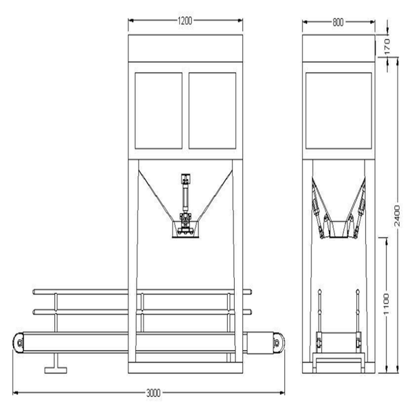 - Khung cân, phễu chứa liệu, phễu cân định lượng, phễu dẫn liệu vào bao, hệ thống kẹp bao và gá đỡ: thép CT3 sơn tĩnh điện.