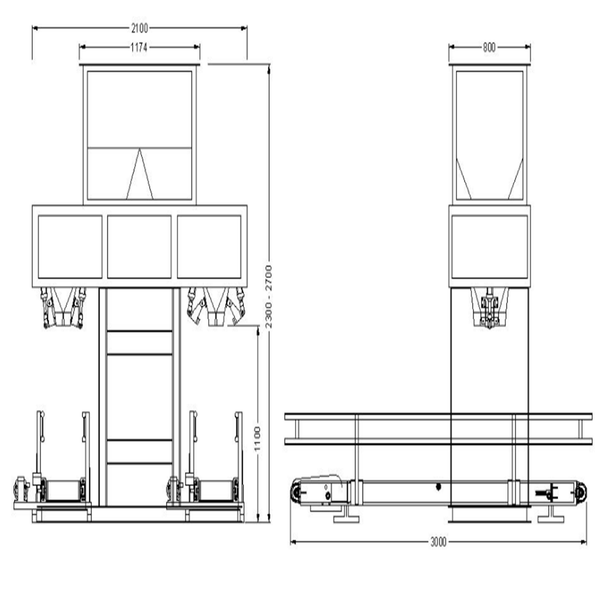 - Cân đóng bao bột PBS02 gồm 2 phễu cân, định lượng bằng vít tải 2 cấp, phù hợp các hệ thống sản xuất năng suất nhỏ, các cửa chắn có thể mở ra, dễ dàng vệ sinh và sửa chữa